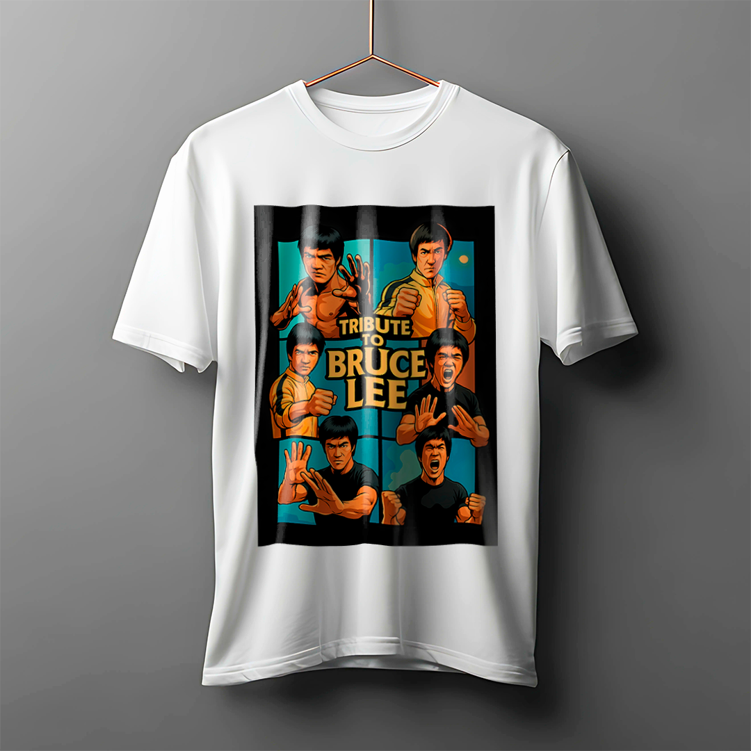 Disciplina viva, golpe preciso e a filosofia que atravessou gerações. Esta camiseta rende homenagem ao eterno Bruce Lee — mestre que transformou artes marciais em arte de viver e nos ensinou a ser como a água: fortes, adaptáveis, imbatíveis. As estampas mixam explosões de tinta, traços orientais e a icônica jaqueta amarela, capturando potência e movimento em um único quadro.