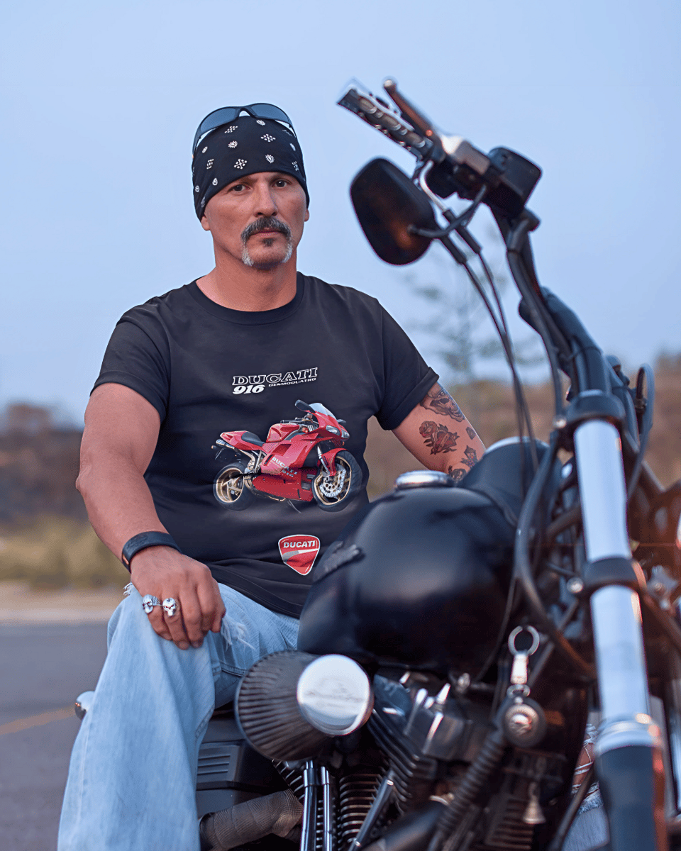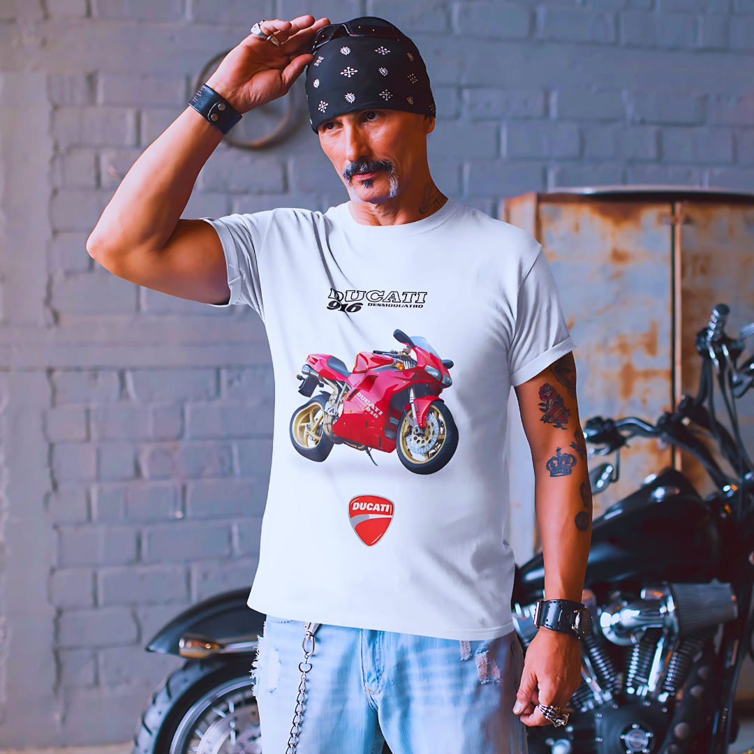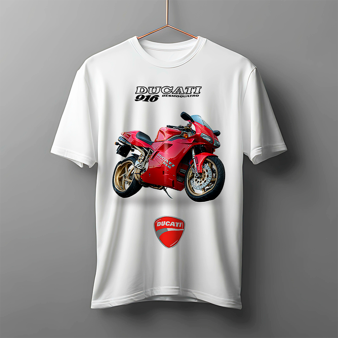 Estilo, velocidade e a paixão italiana, estampados no peito. A Ducati 916 é uma obra de arte das pistas, e esta camiseta transmite toda a emoção e elegância de uma verdadeira campeã mundial. Perfeita para quem não abre mão do design aliado à performance.