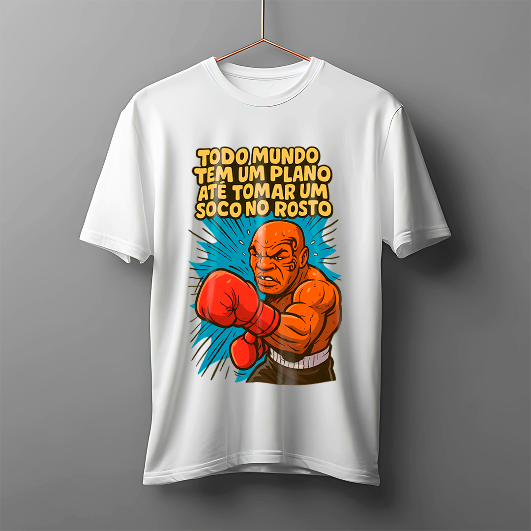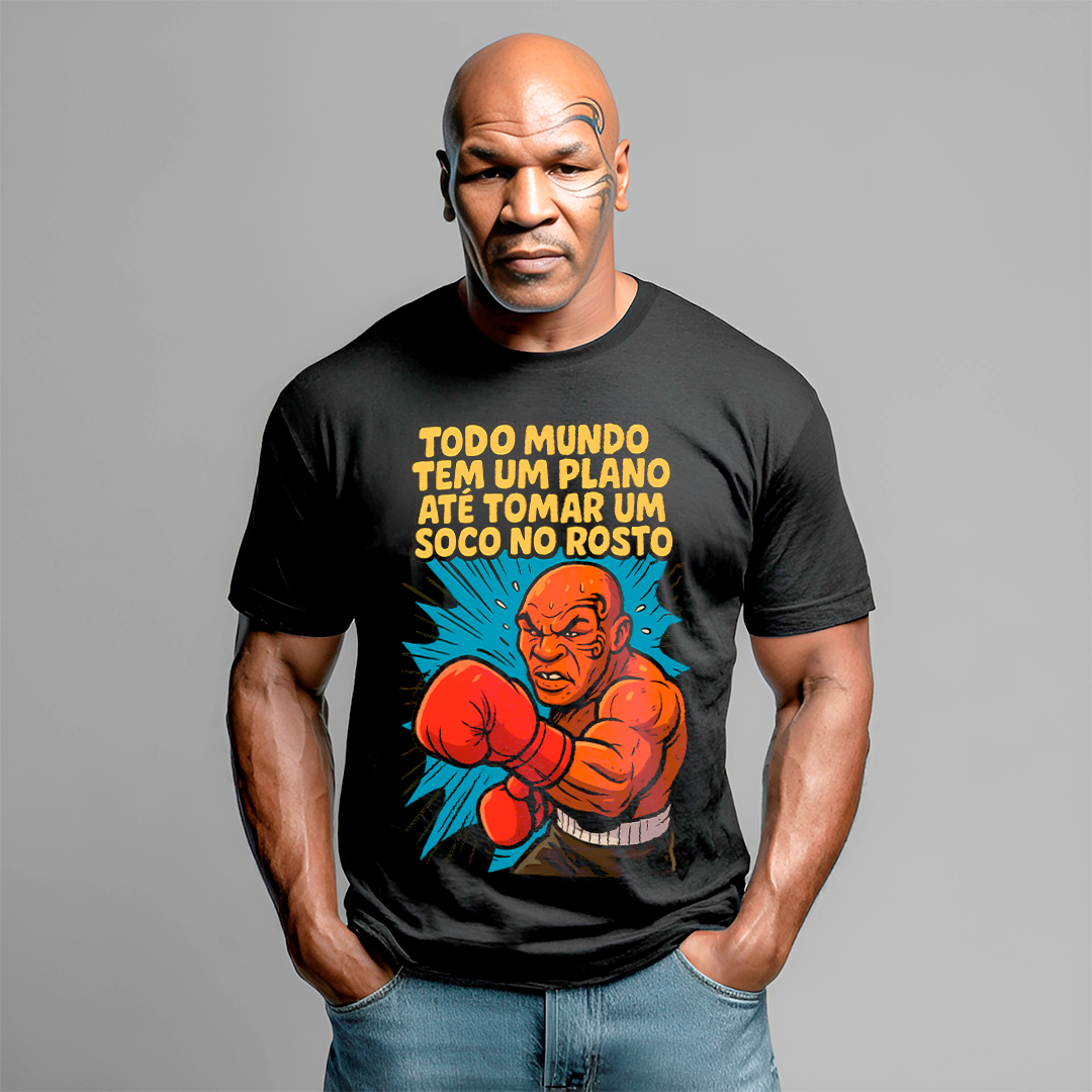 Da frase lendária — “Todo mundo tem um plano até levar um soco no rosto” — ao rugido explosivo de “BOOM!”, esta coleção captura o impacto bruto de Iron Mike. Seja no traço de HQ, no pôster granulado preto-e-branco ou no splash pop art, cada estampa traz a ferocidade inconfundível de quem foi temido antes mesmo do primeiro gongo.
