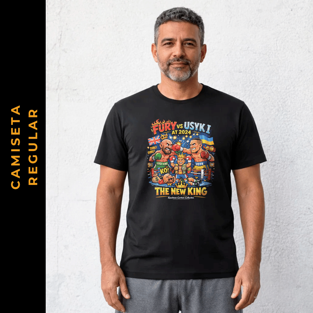 A coleção Cartoon Boxing Rawlman nasce como uma homenagem criativa aos maiores nomes e momentos históricos do boxe mundial. Com ilustrações em estilo cartoon, divertidas e cheias de personalidade, cada estampa transforma lendas do ringue e combates épicos em peças únicas, que misturam atitude, nostalgia e identidade. É boxe contado com humor, respeito e muita presença visual, feito para quem vive a cultura do esporte dentro e fora do ringue.
