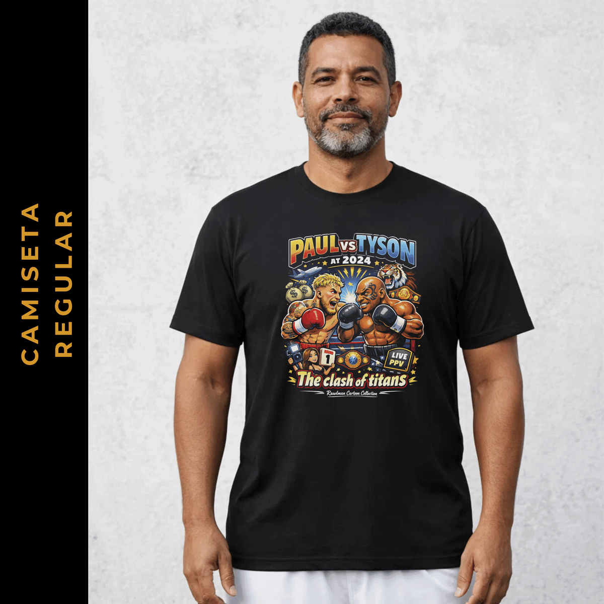 A coleção Cartoon Boxing Rawlman nasce como uma homenagem criativa aos maiores nomes e momentos históricos do boxe mundial. Com ilustrações em estilo cartoon, divertidas e cheias de personalidade, cada estampa transforma lendas do ringue e combates épicos em peças únicas, que misturam atitude, nostalgia e identidade. É boxe contado com humor, respeito e muita presença visual, feito para quem vive a cultura do esporte dentro e fora do ringue.