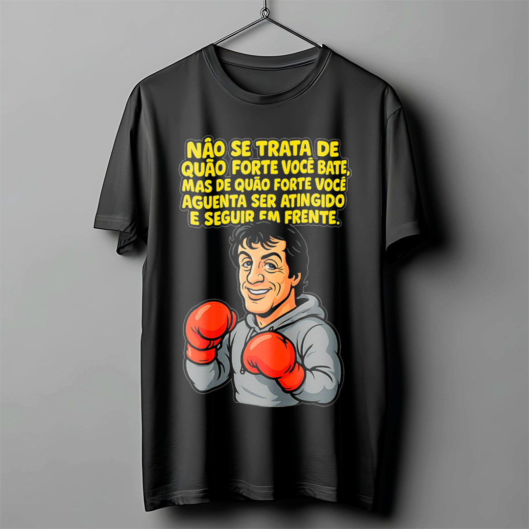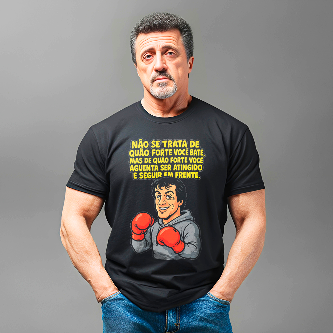 Punhos cerrados, faca na mão ou óculos escuros prontos para a próxima missão — Stallone escreveu seu nome na história como símbolo de garra indestrutível. Estas camisetas reúnem seus personas lendários — Rocky BalboaJohn RamboCobraJudge DreddBarney Ross — para lembrar que “desistir” não faz parte do vocabulário de quem nasceu para lutar (e vencer).